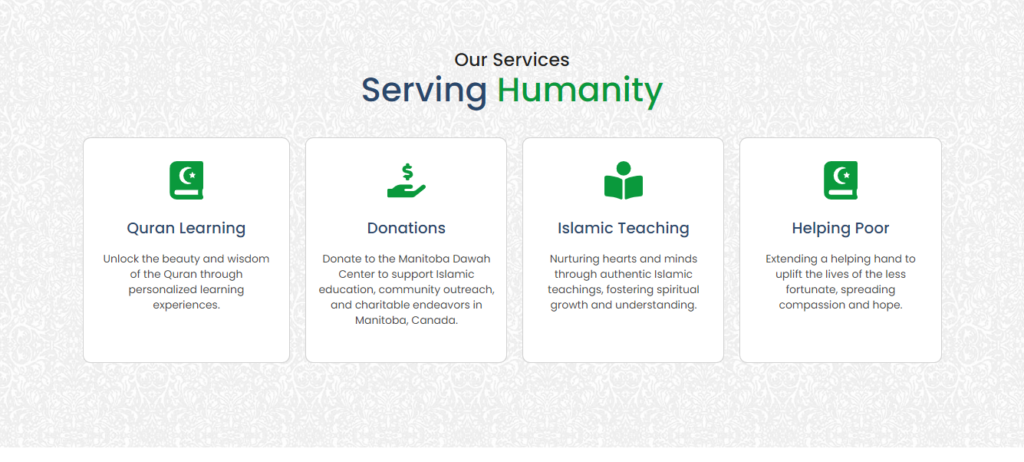 The development of the Manitoba Dawah Center website successfully addressed key challenges, resulting in a welcoming, informative, and user-friendly online presence. The project highlights the importance of community-focused design in enhancing engagement and support for nonprofit and religious organizations.
